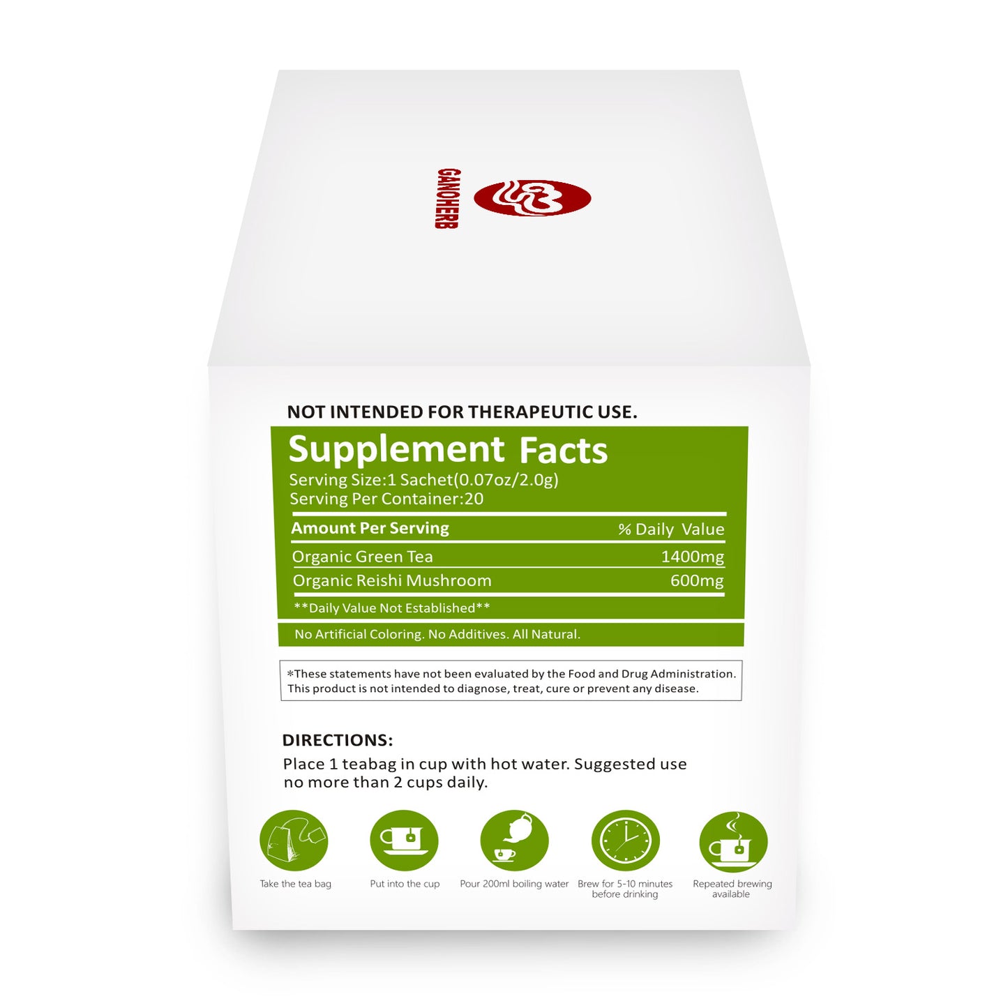 ADDED WITH REISHI MUSHROOM - Organic Green Tea is added with the extract of organic Reishi Mushroom, a traditional Chinese medicine that is also known as the magic herb which has good benefit to health.