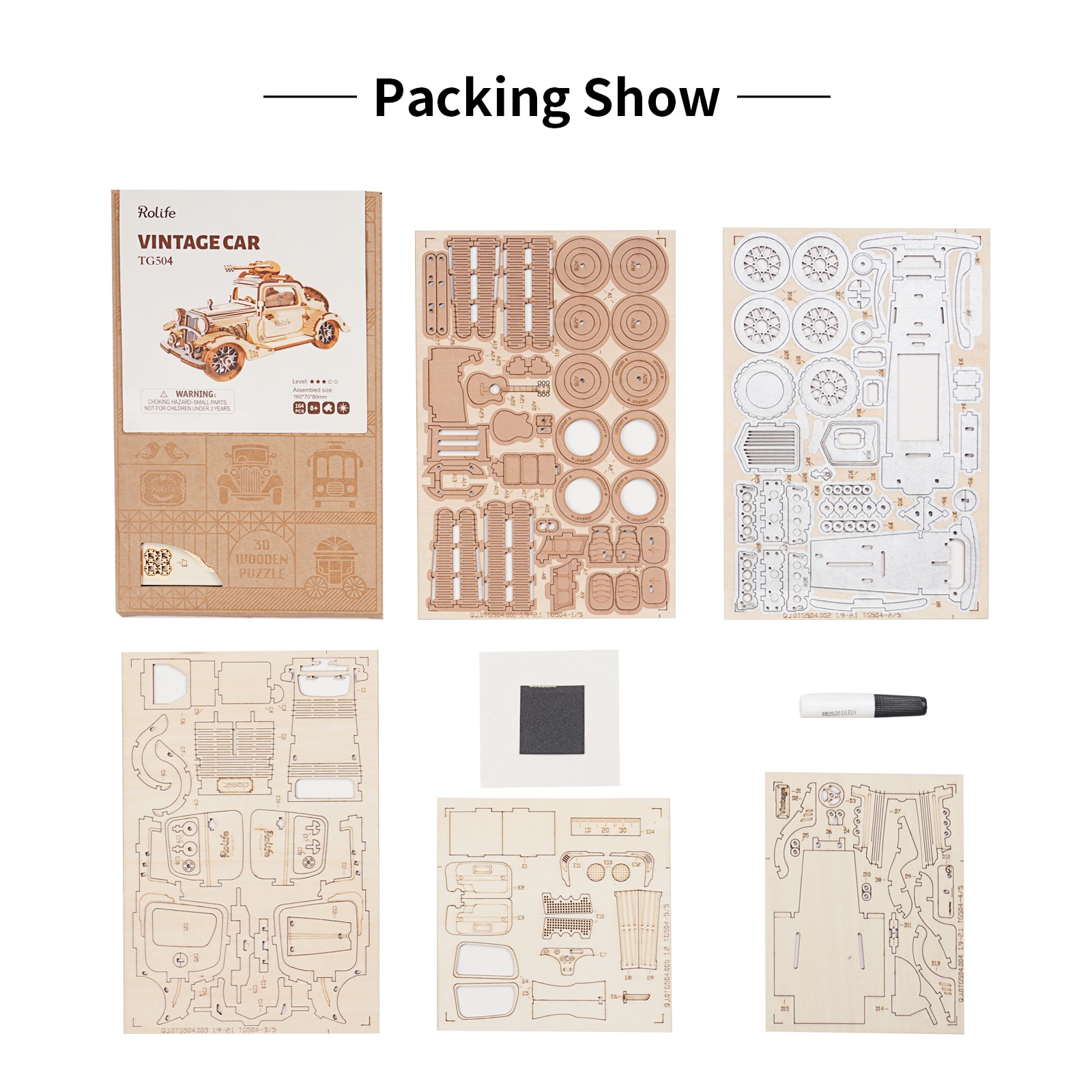 Robotime Rolife 3D Wooden Puzzle – Vintage Car Model for Kids
